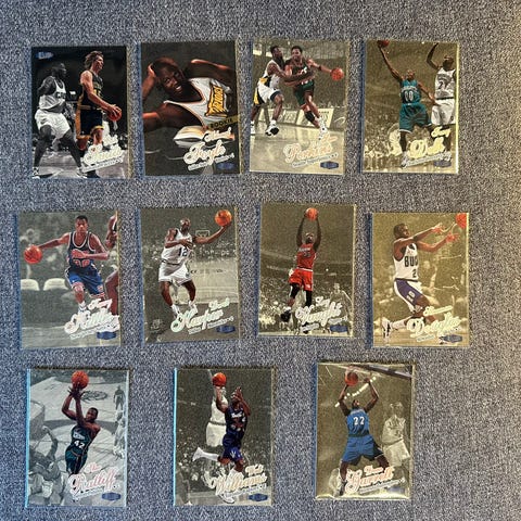 6 stk 1995/96 Ultra Gold Medallion basketballkort! Selges som vist på bilder. Slitasje på flere av kortene som vist på bildene.