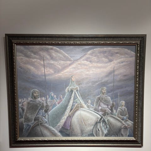 Selger unna litt arvegods. Her får du et unikt maleri av den fremadstormende kunstneren Bjørn Båsen, min fetter. «Skaredragen» fra serien Tussesølv.