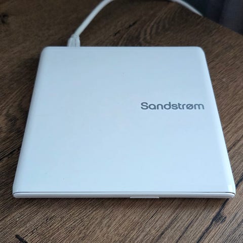 Liten ekstern dvd-spiller som plugges direkte inn i laptop.