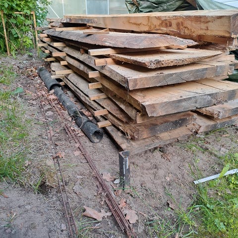 Bark er fjernet. Ligget til tørk siden høst 22.