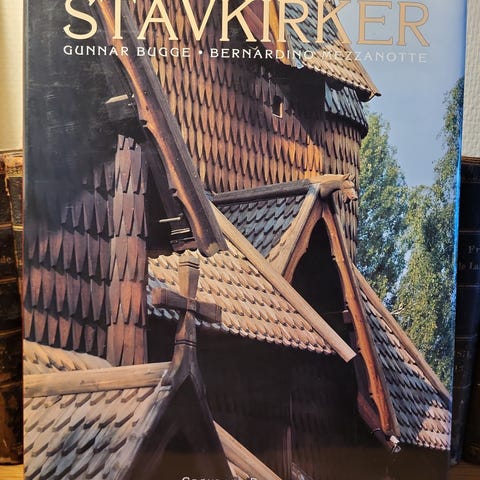 Roar Hauglid: Norske stavkirker. Dreyers forlag 1969. En bok i stort format rikt illustrert med store, skarpe tydelige fotografier av detaljer i stavkirkene våre. Her kan du studerere som på nært hold. Boken er innbundet og i pen stand. Kan sende.