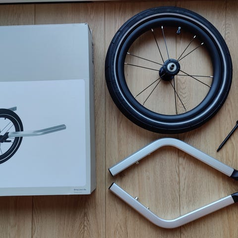 Vognen har tre store hjul som er egnet for løping og turer på variert underlag.