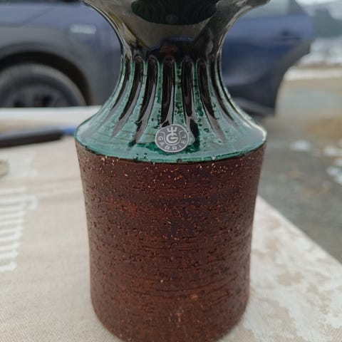 Flott keramikkvase av Ingegärd Burmeister for svenske Gabriel keramik. Med originallappen på.