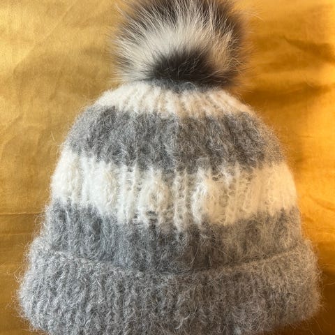 Dusken er mørk grå og av ekte revepels. Den er enkelt avtagbar; for vask av lua, og variasjon!