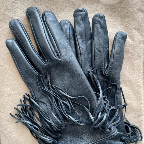 Disse kule skinnhanskene fra Hanskemakaren ble dessverre litt for små til meg. De har aldri vært brukt, de henger fortsatt sammen med plast strips. Skinnet er veldig mykt, men ikke foret med varm stoff. 6,5 str tilsvarer XS’ eller smal.