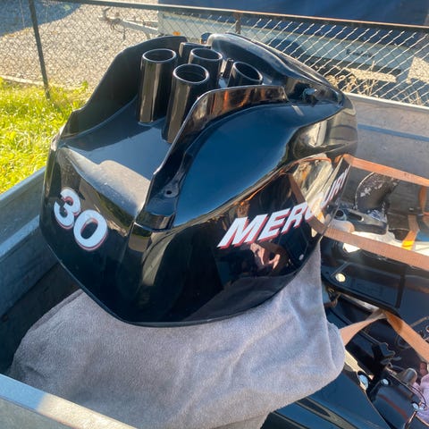 Har stående en Mercury 30hk 2 syl fra 90 tallet. Uten girhus men ser ellers komplett ut. Kompresjon ok.Selges hel elr i deler. Spør om priser.