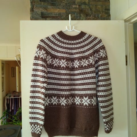 Tjukk variant strikket i Fritidsgarn fra Sandnes Garn, 100 % norsk ull.