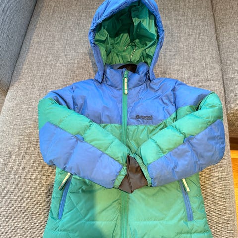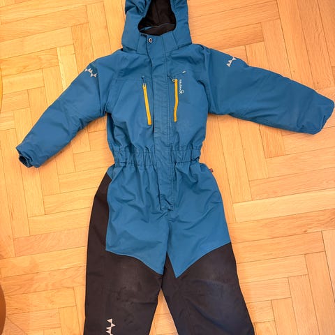 Brukt av ett barn fra 6 år fram til 10 år (ett barn med gjennomsnittlig høyde og bygning). Hadde nok bruk den i to sesonger til om den passet fortsatt. Nylig reparert glidelås-beskyttelse. vanlig slitasje. Reparert øverst på glidelås(se bilder) Nypris 1500-2200,-