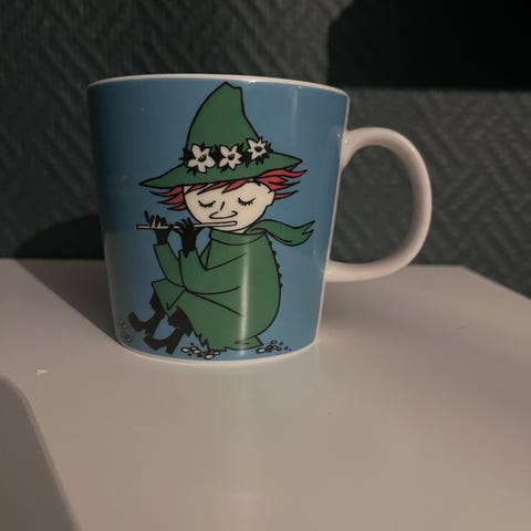 Arabia Mummi Snusmumrikken kopp i blått porselen med kronestempel