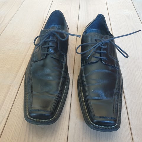 Egner seg til bruk på kontor, selskap og andre anledninger der man ønsker et formelt uttrykk. Ny pris 2100,- Selges for 800,- Lite slitasje på såle og skinn er meget velholdt.