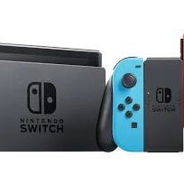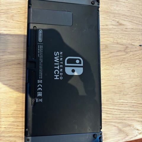 Nintendo Switch spillkonsoll med neon rød/blå Joy-Con-kontrollere. Konsollen leveres med original dokkingstasjon, HDMI-kabel og strømadapter. I tillegg følger det med en Nintendo Switch Pro Controller.