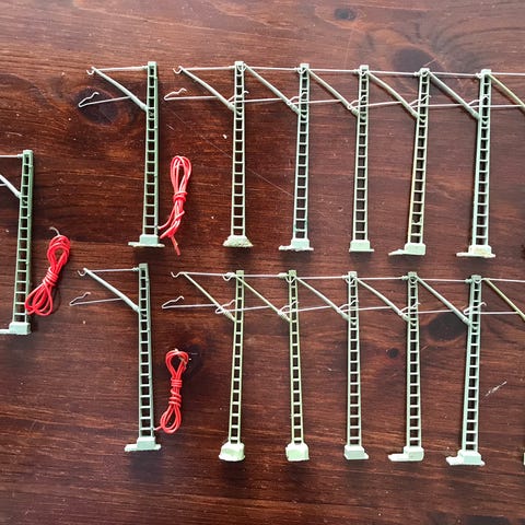 Selger 10 stk. Viessmann 43103 luftledningsmaster N og 3 stk 4331 luftledning 222mm. N-skala