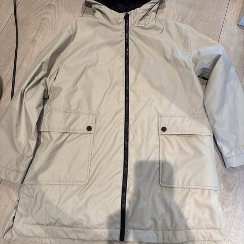 Meget pent brukt regnkåpe / regnjakke fra Zara. Den har pels inni som gjør at den er god og varm. Hetten har også pels inni. Kan også fungere som vinterjakke.