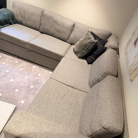 Hjørnesofa med uttrekk for sovesofa selges jillig grunnet flytting. Den er godt brukt da vi har hatt kattunger. Må hentes.