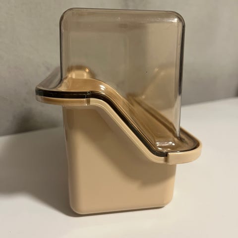 Boksen inneholder flere uttrekkbare hvite skuffer for oppbevaring av smørbrød.