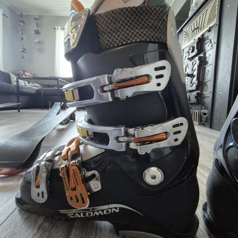 Scarpa skistøvler i oransje farge. Modellen har flere justerbare spenner i metall foran og bak for god tilpasning rundt fot og legg. Overdelen er i hardplast med innerstøvel i tekstil for komfort og støtte. Sålen er utformet for bruk med skiutstyr/bindinger. Passer til alpint eller randonee avhengig av bindingstype. Størrelse 41.