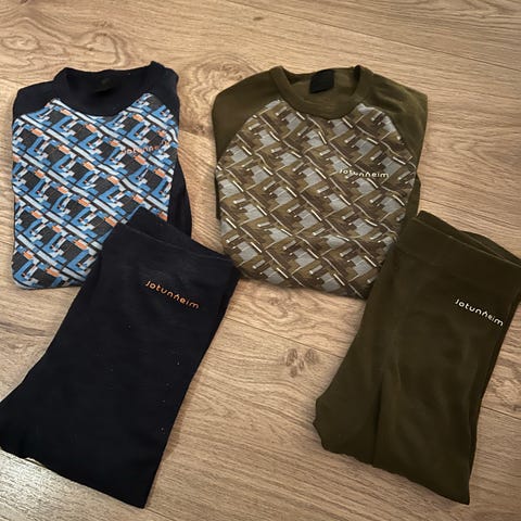størrelse 158/164. sett med bukse og genser, blått med mønster. selges samlet for 70kr eller 50 for en del