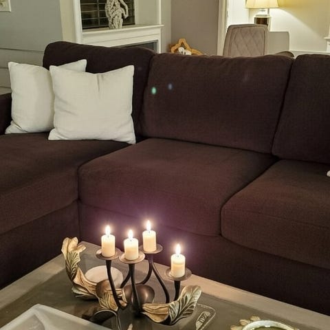 3 seter 218cm 88 cm dyp. Stoff mørkebrunt