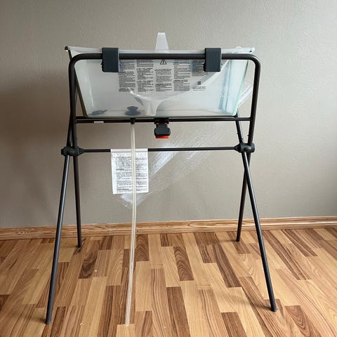 Stokke Flexi Bath med stativ og nyfødtinnlegg.