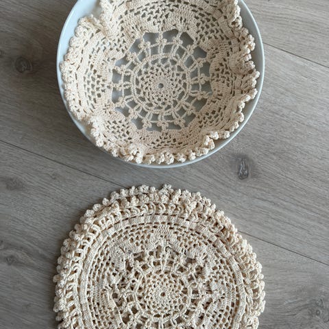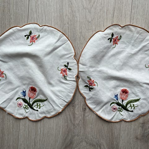 Nydelige Tynne duker, brikker, i kremhvit med broderier, selges samlet