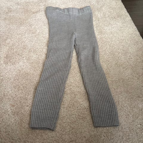 Bukse strikket i mykt ullgarn, ca str 116 men kan brettes ned og forlenge bruken. Strikk i livet. Kommer fra røykfritt hjem.