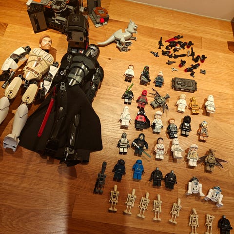 Alle figurene er fortsatt i esken sin, scannet innhold med Minifigur-app.