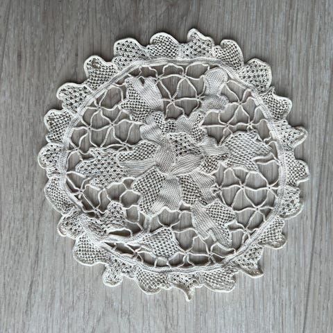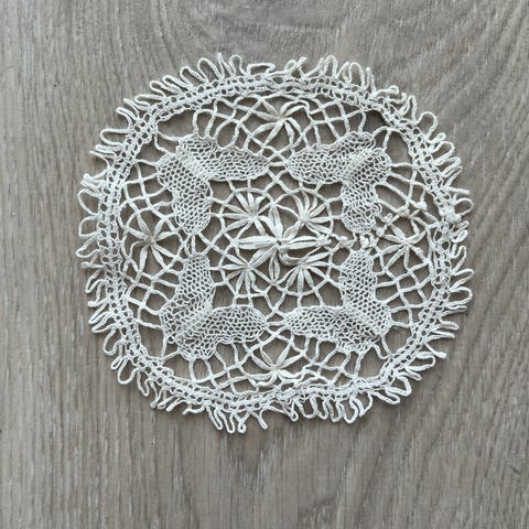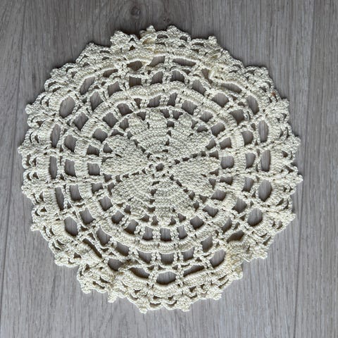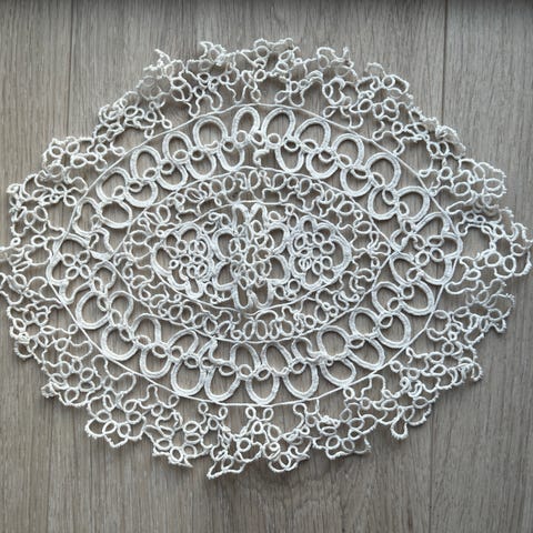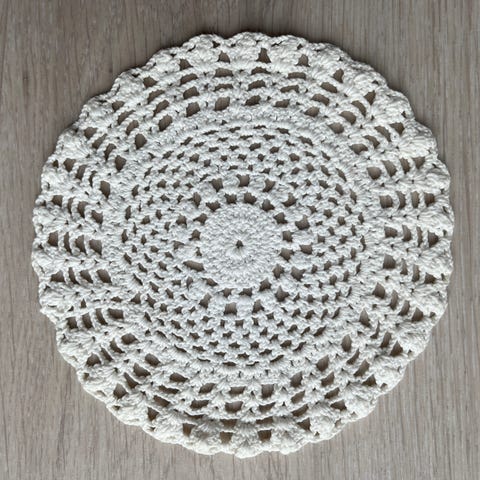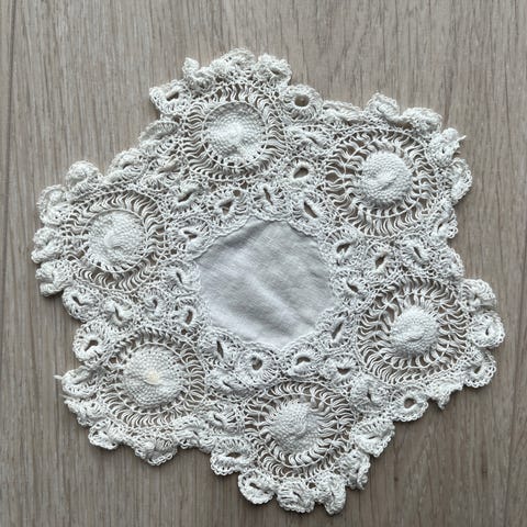 Liten duk, brikke, 20,5 x 20,5 cm, hvit bomull, heklet