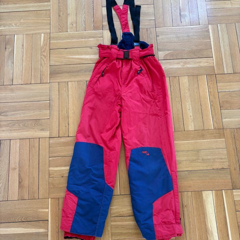 Rød ski/utebukse med bukseseler i str S, pent brukt noen få ganger.