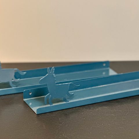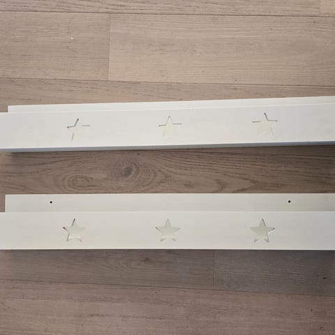 Søt hylle til barnerom, str ca 35x40 cm, har liten hakk i maling men det er ingen problem å fikse, må hentes