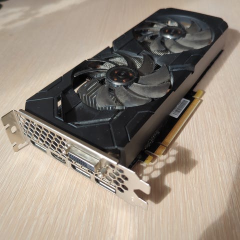 Nvidia GeForce GTX 760 skjermkort med 2 GB GDDR5-minne. Kortet har utganger for to DVI, én HDMI og én DisplayPort.