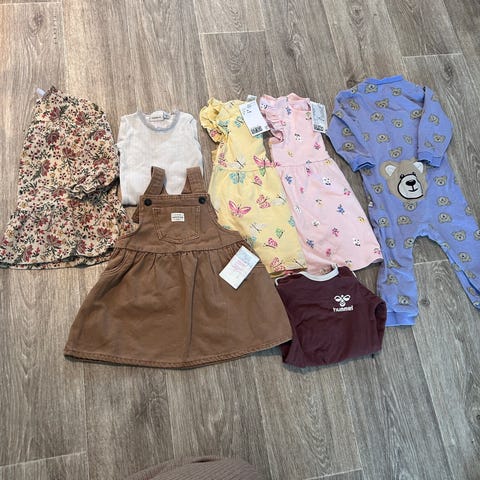 Pent brukt og i god stand. Ingen flekker, merker eller hull. Kommer fra dyre- og røykfritt hjem. Hust&claire er i str 74, men er omtrent likt i str som de andre