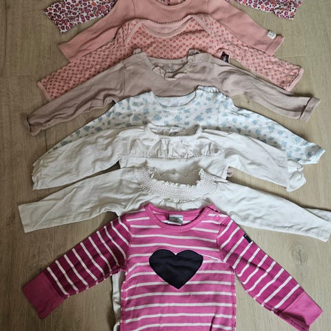 5 bodyer med lang arm (hull ved knappene og en flekk på den rosa med blonder - se bilde)