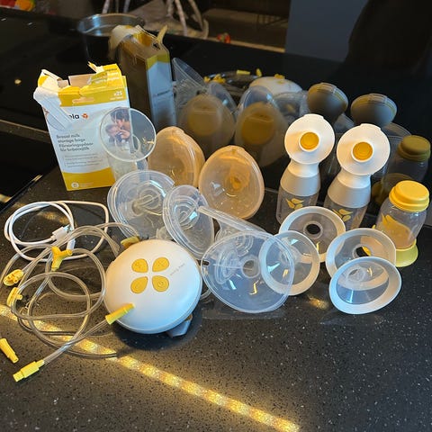 - 2 stk ammebh fra medela, kan holde på plass pumpen, en i str S og en i str M