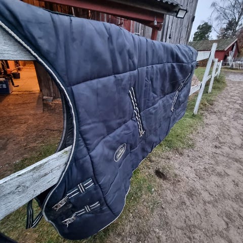Fyll på 300 gram gir behagelig varme for hesten din når den er inne på kjølige dager. Den hele halsen vil beskytte hestens sårbare hals mot trekk og minustemperaturer. Ekstra fleecepolstring på manken forhindrer gnag. Doble T-spenner for lukking foran, og kryssgjorder holder dekkenet på plass sammen med en halesnor. Dette dekkenet er robust nok til å brukes som utedekken også!