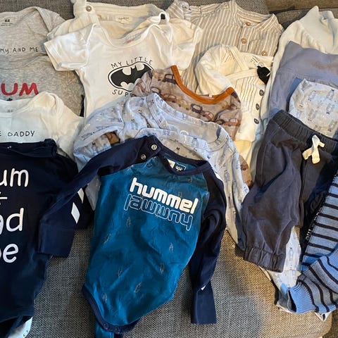 Klespakke til gutt i str 56-68. Mye tøy, deriblant ett ullsett ifra nameit. Nupper/flekker kan forekomme.