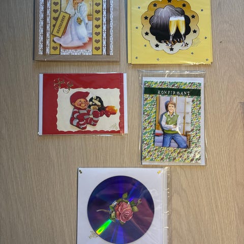 5 kort selges samlet med gratis frakt.