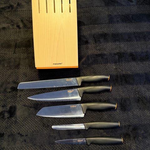 Fiskars Essential knivblokk med 5 kniver selges. I god stand. Kan sendes!