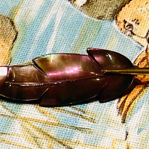 Oval håndlaget perlemorsmosaikk hårspenne.