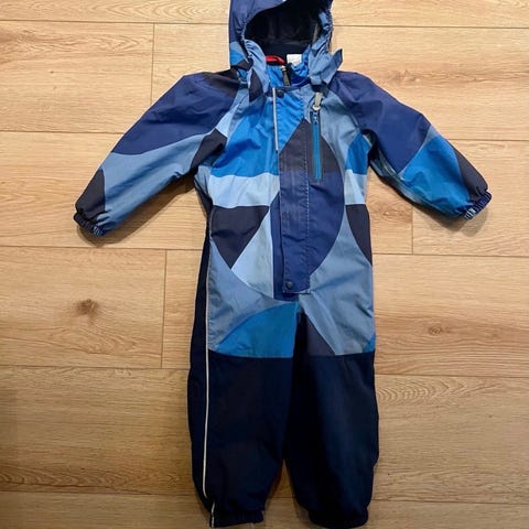 Tynn parkdress. den har en del merker etter bruk, men ingen hull og minimalt til ingen slitasje på baken og knær. Mangler strikk nede i bena.