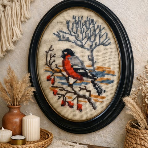 3 retro broderte bilder/klokkestreng Håndarbeid