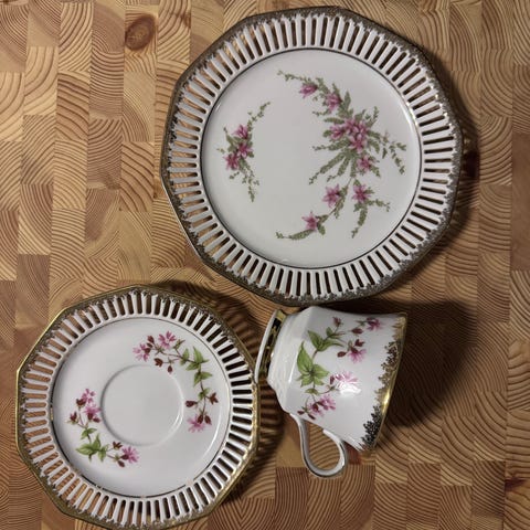 Pent kaffeservise til 12. Merket er Svaneholm 1530 og navn på servise er Skogviol. Nydelig blå dekor.