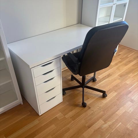 Selger et veldig lite brukt IKEA LAGKAPTEN / ALEX skrivebord (120 x 60 cm) i hvit/brunsvart.