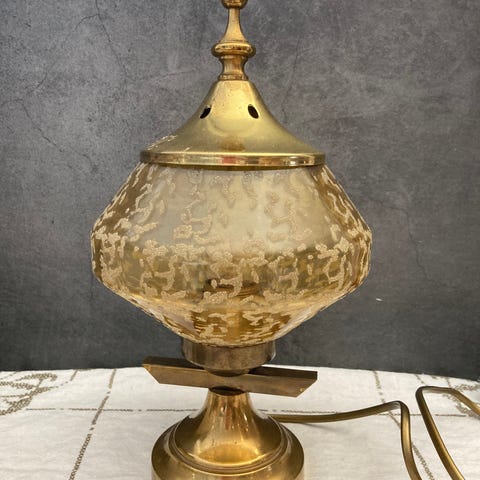 2 stk skomakerlamper, i messing og porselen.