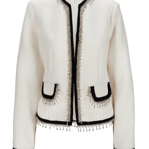 Lekker jakke i blått og beige med denimkanter. Som ny, brukt kun 2 ganger. Litt stor i størrelsen, 34 er mer som en 36. Ny pris kr 2999