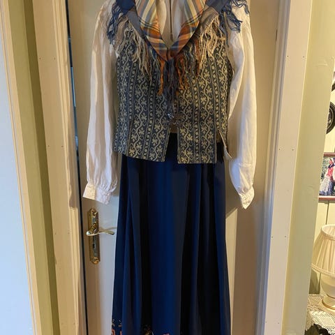 Pent brukt hedmarksbunad 1935 modell selges. Leveres med skjorte (uten sølje), vest, stakk, veske og lue (alt i ull unntatt skjorte).