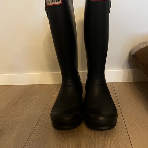 Hunter gummistøvler for barn, unisex. Modellen er i gul farge med dyremotiv på skaftet og fronten. Støvlene er laget i gummimateriale med mønstret yttersåle for bedre grep. Passer til bruk i regnvær og vått underlag. Støvlene har middels høyt skaft og klassisk Hunter-logo foran.