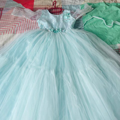 Velur kjole med sequin detaljer med 2 lag mesh netting bak