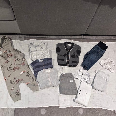 Noe er brukt av kun et barn å noe av 2. pent brukt, ingen skader eller flekker.