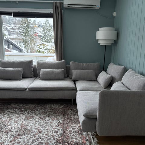 Pent brukt 3 år gammel 3 seter + sjeselong Söderhamn sofa fra IKEA selges. Trekket kan trenge en vask, enkelt å ta av og på og kan vaskes i vaskemaskin. Trekket er kun 1,5 år gammelt. Ingen slitasje eller skader.