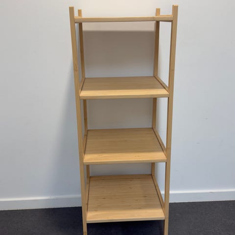 Hvitmalt bokhylle med 2 (løse) hyller og bakvegg. Hyllene kan flyttes. Det er et lite hull oppunder topplata, samt et større laget hull i bakvegg for evt ledninger. Forøvrig stabilt og pent brukt.
